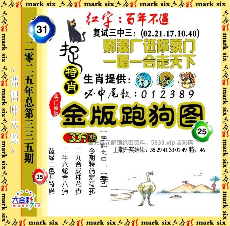 | 335期:七肖 | 兔鸡牛猴虎马狗 | 狗44中 |